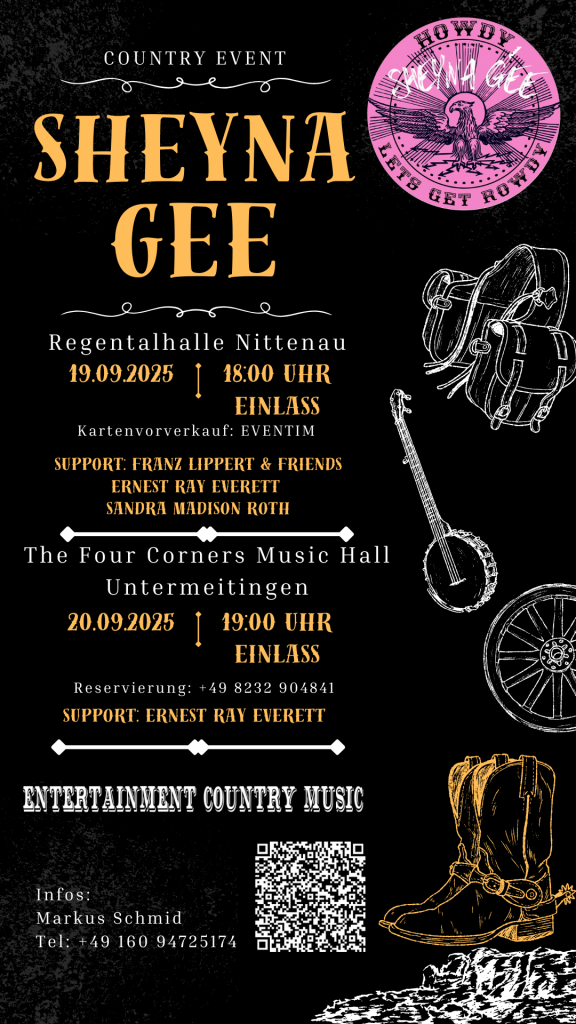 Ob auf oder abseits der Tournee, Sheyna fängt mit Leidenschaft die Welt um sich herum ein und teilt ihre Liebe zum Reisen, zu unterhaltsamen Menschen und zur Country-Musik mit ihren Followern. Eines ist sicher – Sheyna Gee ist in der Country-Szene angekommen wie ein frischer Wind, mit ihren einzigartigen Erzählungen, ergreifenden Texten und der Fähigkeit, den Zuhörer mit ihrer rauen Stimme und ihrer emotionalen Darbietung im Innersten zu treffen.